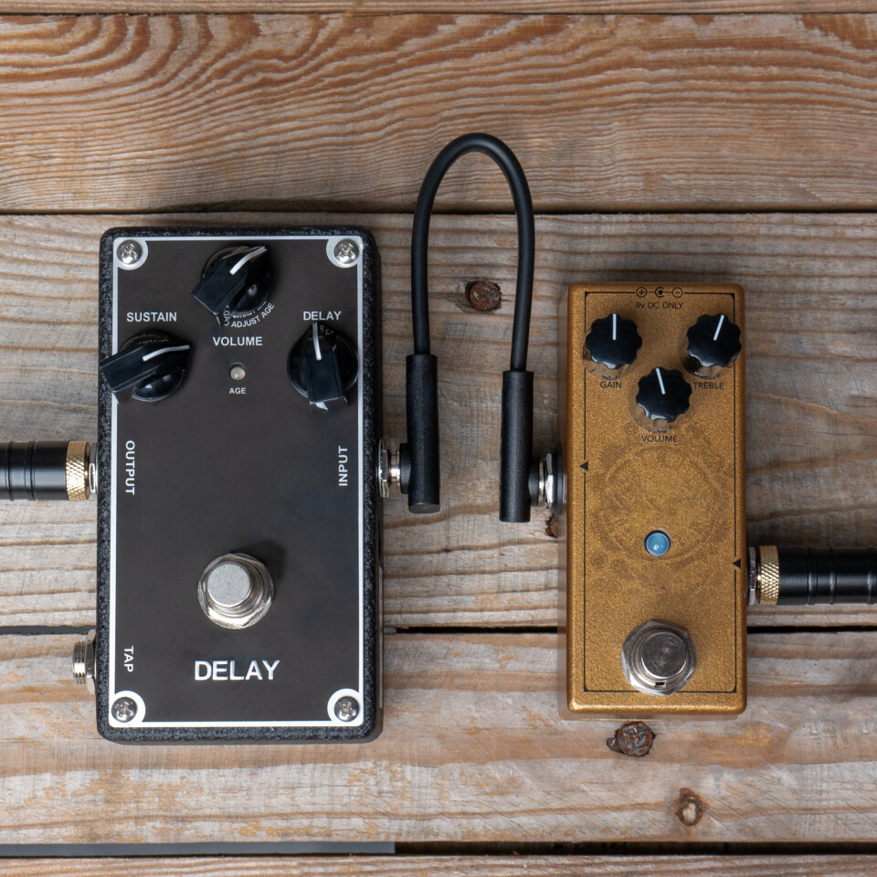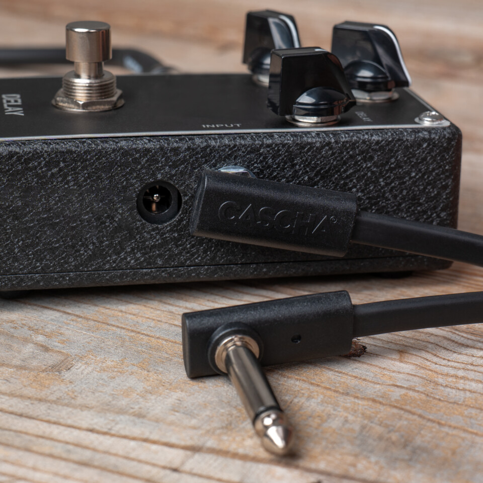 Unsere flachen Patch-Kabel aus PVC in Schwarz mit silbernen Steckern sind in den Längen 10, 20 und 30 Zentimeter verfügbar. Diese Kabel sind ideal für eine saubere und organisierte Verbindung von Pedalen und Synthesizern.