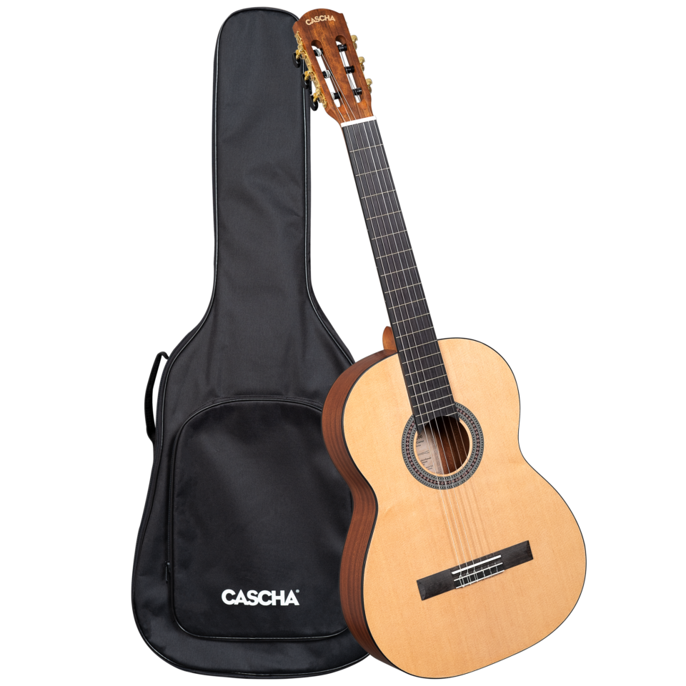 Zum Lieferumfang der CASCHA Stage Series CGC 200 3/4 gehört ein schwarzes Gigbag mit einer Innenpolsterung von 5 Millimetern. Somit lässt sich die Gitarre jederzeit sicher verstauen und transportieren – etwa zum Unterricht, zur Probe oder zum Auftritt. Ein Außenfach mit Reißverschluss eignet sich perfekt, um auch Zubehör wie Stimmgerät, Plektrum oder Notenheft immer und überall dabei zu haben.