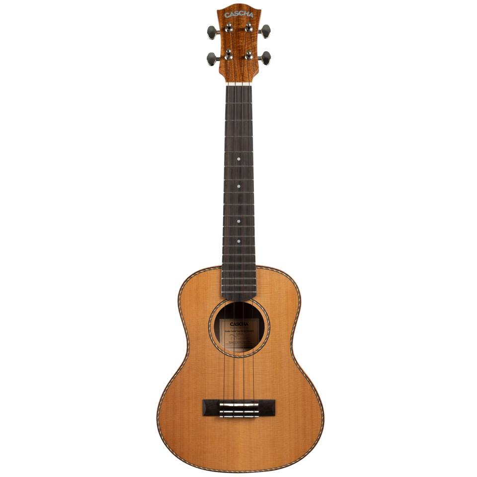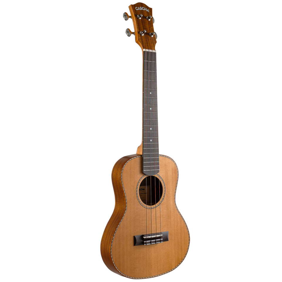 Einfach auspacken und Spaß haben. Die Ukulele ist ein geniales Instrument. Sie ist handlich, klein und einfach zu erlernen. Diese Tenor Ukulele überzeugt durch ihre hohe Qualität und die hervorragenden Klangeigenschaften der verwendeten Klanghölzer. Dank der präzisen, offenen Stimmmechaniken und den exzellent klingenden Fluorocarbon-Saiten hält sie ihre Stimmung immer perfekt. An den vorhandenen Gurtpins lässt sich schnell und einfach ein Ukulele Gurt anbringen. Die Cascha Ukulele Cedar Solid Top ist sowohl für Einsteiger als auch für fortgeschrittene Spieler geeignet. Zum Lieferumfang dieses Sets gehören eine praktische 5mm gepolsterte Tragetasche.