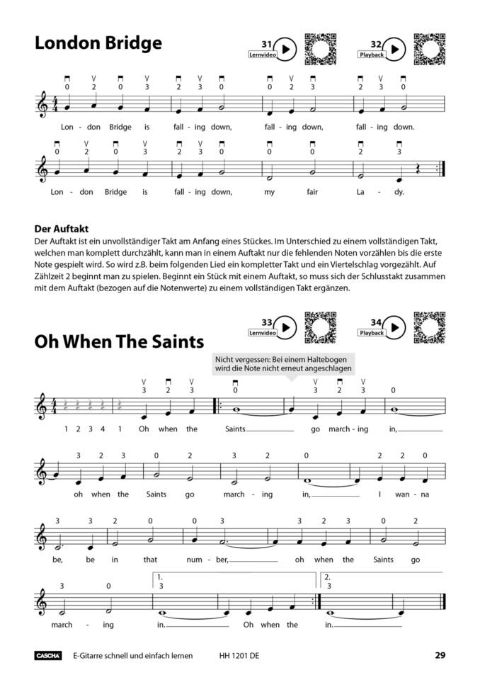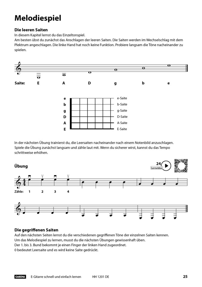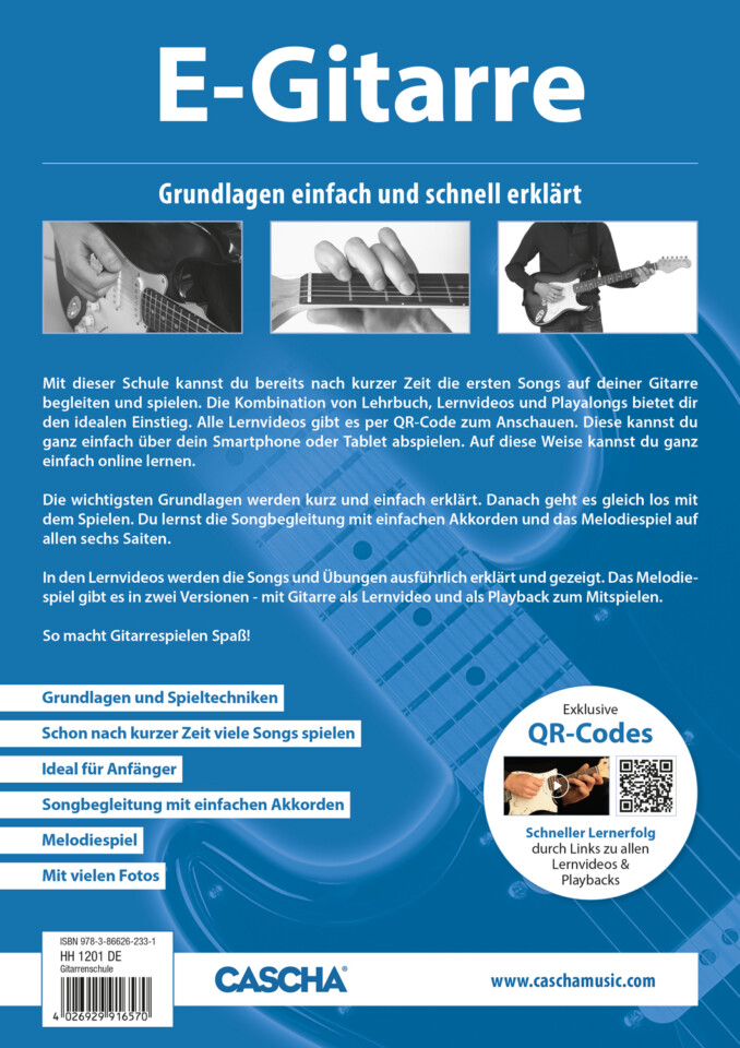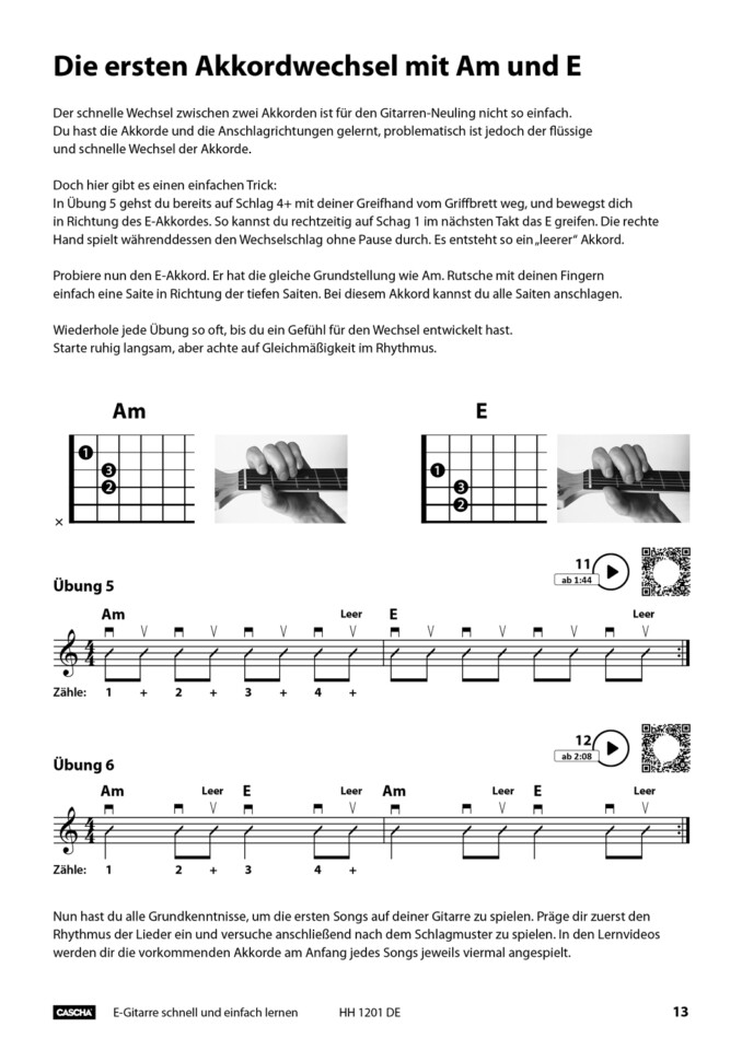 Mit dieser Schule kannst du bereits nach kurzer Zeit die ersten Songs auf deiner Gitarre begleiten und spielen. Die Kombination von Lehrbuch, Lernvideos und Playalongs bietet dir den idealen Einstieg. Alle Lernvideos gibt es per QR-Code zum Anschauen. Diese kannst du ganz einfach über dein Smartphone oder Tablet abspielen. Auf diese Weise kannst du ganz einfach online lernen.