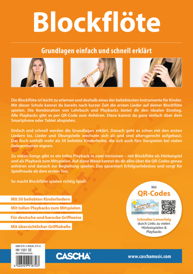 Die Blockflöte ist leicht zu erlernen und deshalb eines der beliebtesten Instrumente für Kinder. Mit dieser Schule kannst du bereits nach kurzer Zeit die ersten Lieder auf deiner Blockflöte spielen. Die Kombination von Lehrbuch und Playbacks bietet dir den idealen Einstieg. Alle Playbacks gibt es per QR-Code zum Anhören. Diese kannst du ganz einfach über dein Smartphone oder Tablet abspielen.
