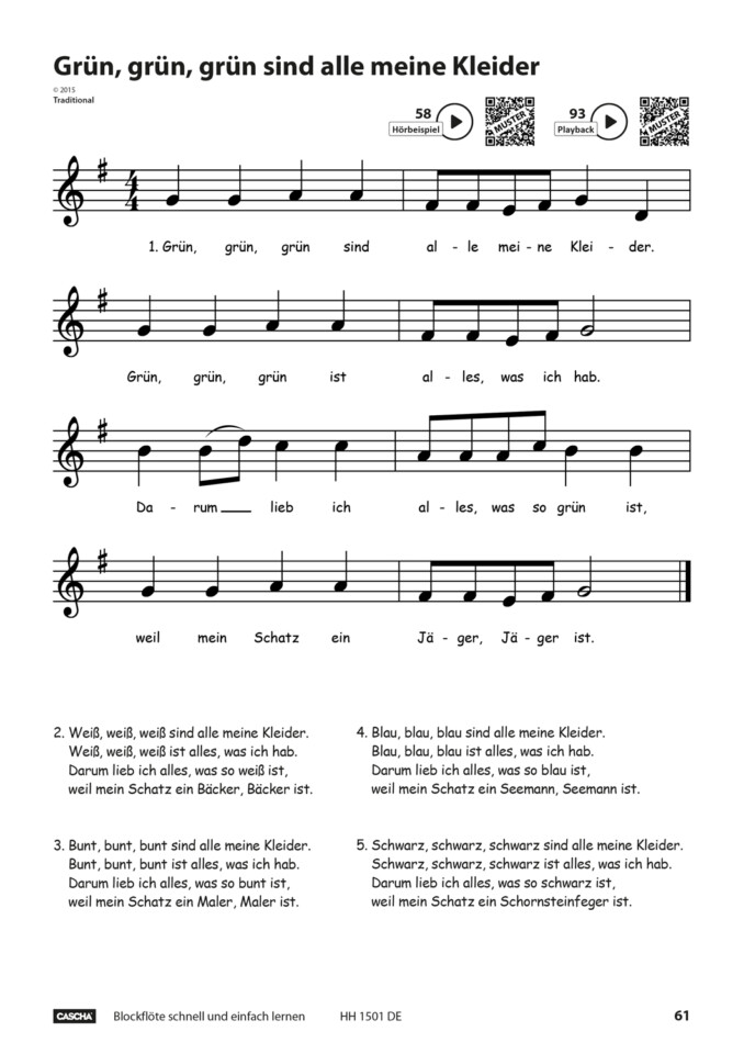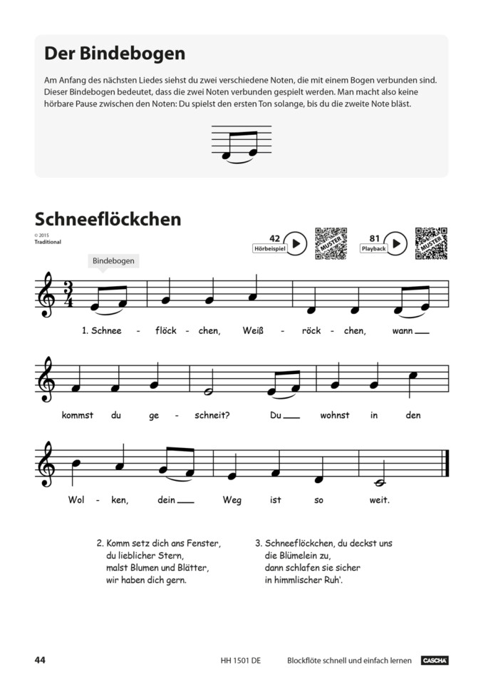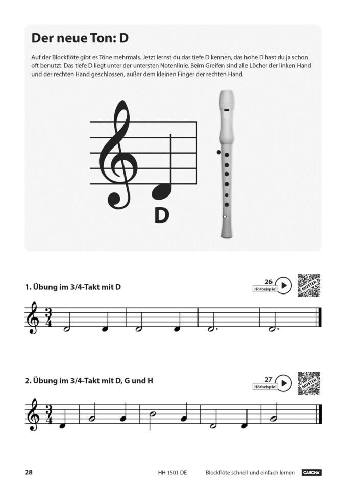 Zu vielen Songs gibt es ein tolles Playback in zwei Versionen – mit Blockflöte als Hörbeispiel und als Playback zum Mitspielen. Auf diese Weise kannst du dir alles über die QR-Codes genau anhören und danach zur Begleitung spielen. Das garantiert Erfolgserlebnisse und sorgt für Spielfreude ab dem ersten Ton.