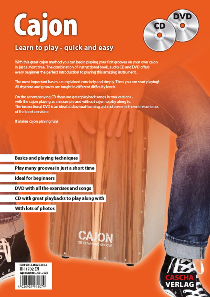Mit dieser großartigen Cajon-Methode kannst du schon nach kurzer Zeit deine ersten Grooves auf deiner eigenen Cajon spielen. Die Kombination aus Lehrbuch, Audio-CD und DVD bietet jedem Anfänger den perfekten Einstieg in das Spiel dieses tollen Instruments. Die wichtigsten Grundlagen werden prägnant und einfach erklärt. Danach kannst du sofort mit dem Spielen beginnen! Alle Rhythmen und Grooves werden in unterschiedlichen Schwierigkeitsgraden vermittelt.