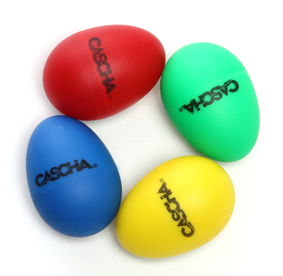 Cascha Plastik Egg Shaker sind „Rhythmus-Eier“, die mit kleinen Kügelchen gefüllt sind. Indem man sie hin- und herschüttelt, erzeugen sie einen raschelnden Klang. Mit ihrem weichen und klaren Sound sind sie musikalisch vielfältig einsetzbar und fügen sich harmonisch in jedes Percussion Setup ein. Auch in der musikalischen Früherziehung, Musiktherapie oder im Schulunterricht werden sie gerne eingesetzt. Der Durchmesser von ca. 4 cm passt perfekt in Kinderhände. Die hochwertige Verarbeitung und Soundqualität begeistern Lehrer, (Musik-)Schüler und Musiker gleichermaßen. Das Set enthält 4 Egg Shaker in den Farben, Rot, Blau, Gelb und Grün. Alle 4 Egg Shaker haben einen identischen Klang.