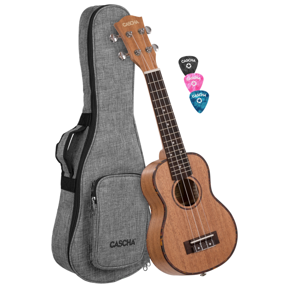 Einfach auspacken und Spaß haben. Die Ukulele ist ein geniales Instrument. Sie ist handlich, klein und einfach zu erlernen. Diese Sopran Ukulele überzeugt durch ihre hohe Qualität und die hervorragenden Klangeigenschaften der verwendeten Klanghölzer. Dank der präzisen, gekapselten Stimmmechaniken und den exzellent klingenden Aquila Marken-Nylon-Saiten hält sie ihre Stimmung immer perfekt. An den vorhandenen Gurtpins lässt sich schnell und einfach ein Ukulele Gurt anbringen. Die Cascha Premium Ukulele ist sowohl für Einsteiger als auch für fortgeschrittene Spieler geeignet. Zum Lieferumfang dieses Sets gehören eine praktische 5mm gepolsterte Tragetasche und 3 Plektren.
