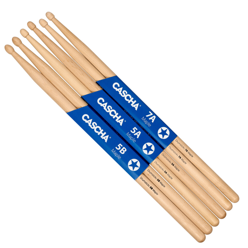Drumsticks spielen eine wichtige Rolle beim Schlagzeug-Sound. Sie sollten ausbalanciert sein, gut in der Hand liegen und nicht zu schwer sein. CASCHA Drumsticks vereinen all diese Eigenschaften und mehr. Das massive Ahornholz sorgt für einen exzellenten Klang, ein gutes Spielgefühl und ist auch bei stärkerer Beanspruchung lange haltbar. Schlagzeugstöcke aus Ahorn sind etwas leichter als andere Modelle, z.B. aus Hickory. Ein ermüdungsfreies Spiel und ein dynamischer Sound sind so garantiert.