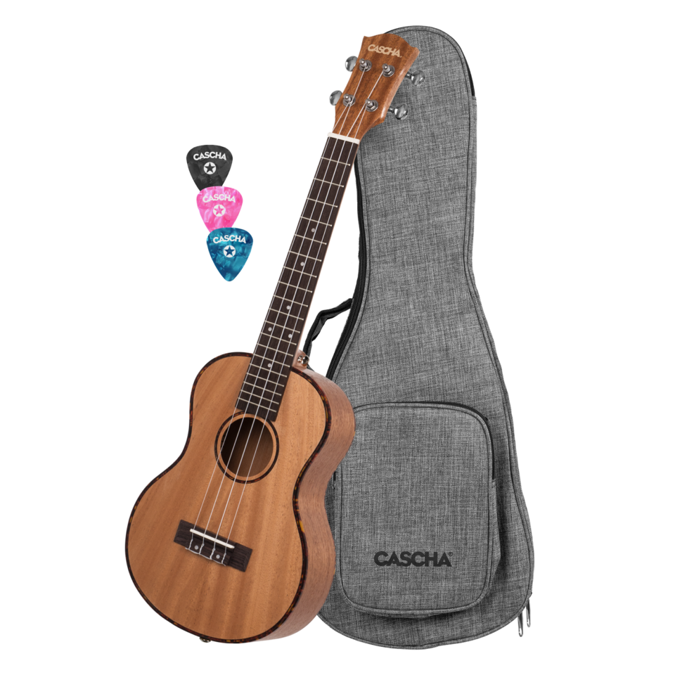 Das perfekte Ukulele Set für alle Linkshänder! Einfach auspacken und Spaß haben. Die Tenor Ukulele für Linkshänder überzeugt durch ihre hohe Qualität und die hervorragenden Klangeigenschaften der verwendeten Hölzer. Der Mahagoni-Korpus sorgt hierbei für einen ausgewogenen, klaren und warmen Sound. Dank der präzisen, gekapselten Stimmmechaniken und den exzellent klingenden Aquila Marken-Nylon-Saiten hält sie ihre Stimmung immer perfekt. An den vorhandenen Gurtpins lässt sich schnell und einfach ein Ukulele Gurt anbringen. Die CASCHA Premium Ukulele ist sowohl für Einsteiger als auch für fortgeschrittene Spieler geeignet. Zum Lieferumfang dieses Sets gehören eine praktische 5mm gepolsterte Tragetasche und 3 Plektren.