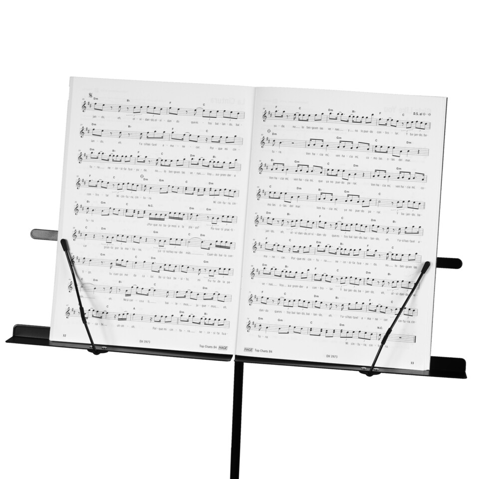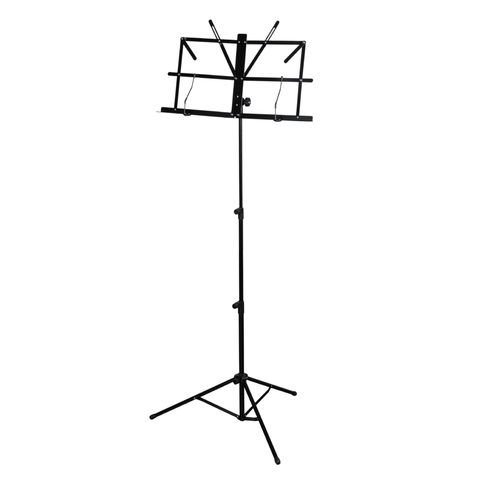 Für die meisten Musiker ist ein Notenständer unverzichtbar. Er sollte einen festen Stand und die richtige Höhe haben, außerdem genügend Platz für Noten bieten. Der Cascha Notenständer hat all das und mehr zu einem Spitzenpreis. Er besteht aus Metall und ist schwarz lackiert. Die Fußstützen besitzen zusätzliche Streben zur Stabilisierung. Die Höhe des Ständers lässt sich von 45 cm bis 112 cm verstellen. Er ist mit griffigen Schrauben ausgestattet und zweifach ausziehbar. So lässt er sich perfekt auf die jeweilige Körperhöhe anpassen, egal ob man im Sitzen oder Stehen spielt. Die im Neigungswinkel einstellbare Notenauflage bietet genügend Platz für Notenblätter und Bücher. Die eingebauten Notenklemmen sorgen für einen sicheren Halt und verhindern das Herunterfallen der Noten. Nach Bedarf können die Klemmfedern entfernt werden. Der Notenständer lässt sich kinderleicht zusammenklappen und schnell wieder aufbauen. Unterwegs sorgt die mitgelieferte Tasche mit praktischem Schultergurt für optimalen Schutz.
