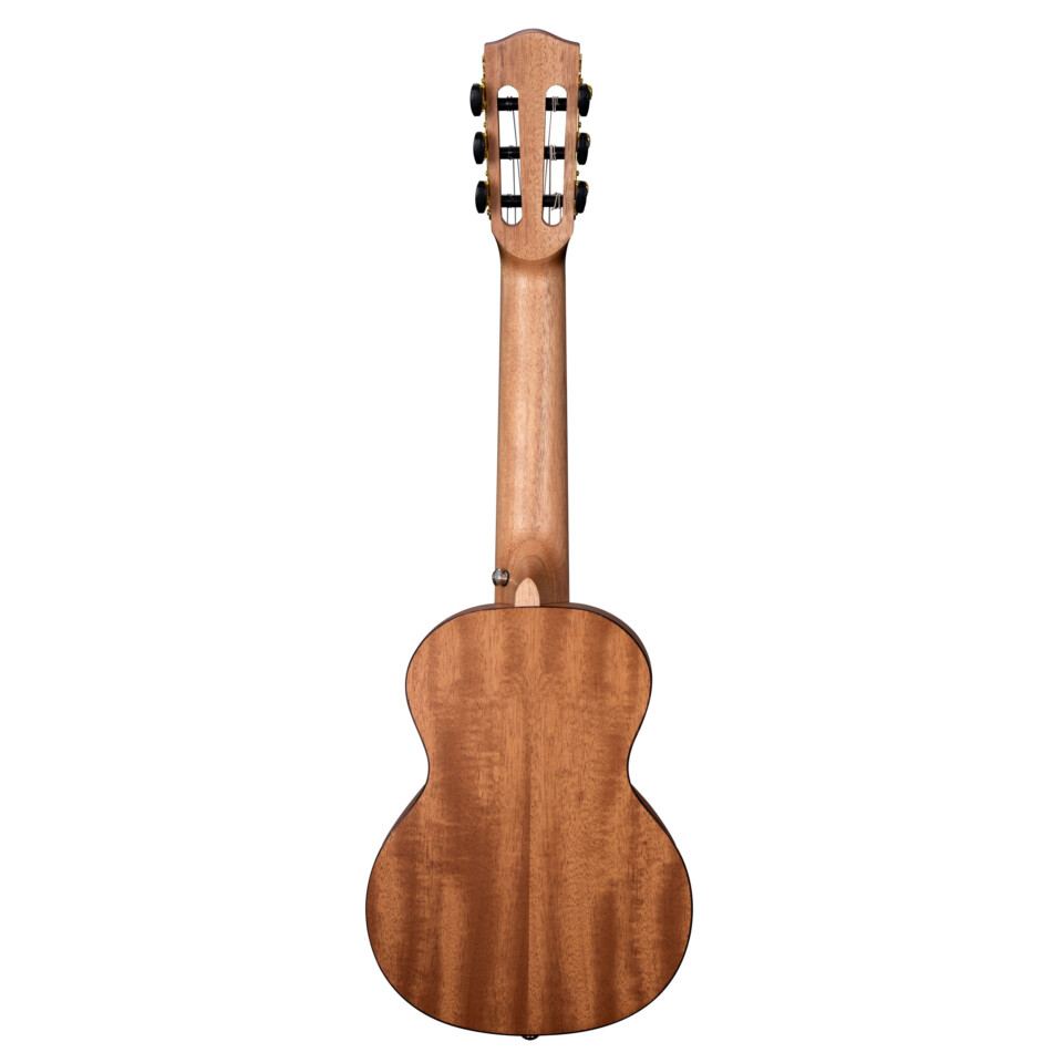 Korpus und Hals der Cascha Guitarlele Mahogany bestehen vollständig aus Mahagoniholz, einer der beliebtesten Holzarten im Gitarrenbau mit einem warmen, ausgewogenen Klang. Griffbrett und Brücke sind aus dunklem Palisander gefertigt, was einen schönen optischen Kontrast ergibt. Zudem ist das „Red Tortoise“-Binding an Korpus und Rosette ein ganz besonderer Blickfang und verleiht der Cascha Guitarlele ein klassisches und sehr edles Aussehen.