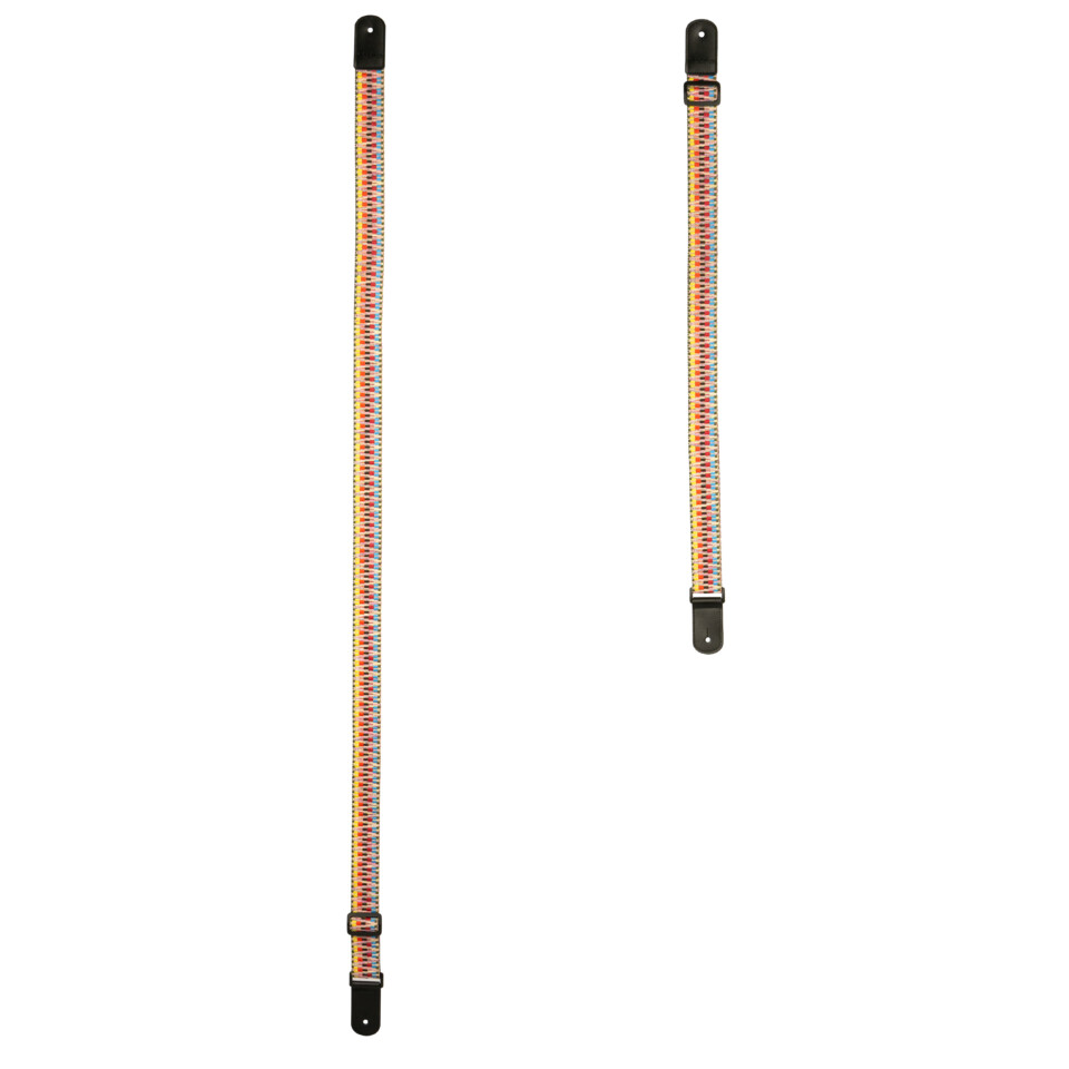Der Gurt ist in der Länge von 76cm bis 139cm verstellbar. Damit kann er individuell an die Größe des Spielers und an verschiedene Ukulelen angepasst werden. Mit dem enthaltenen Band wird der Gurt schnell und einfach angebracht.
