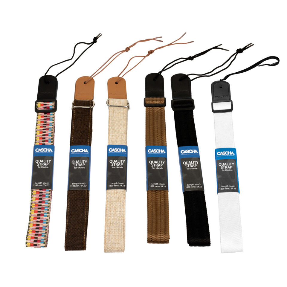 Der Gurt ist in der Länge von 76cm bis 139cm verstellbar. Damit kann er individuell an die Größe des Spielers und an verschiedene Ukulelen angepasst werden. Mit dem enthaltenen Band wird der Gurt schnell und einfach angebracht.