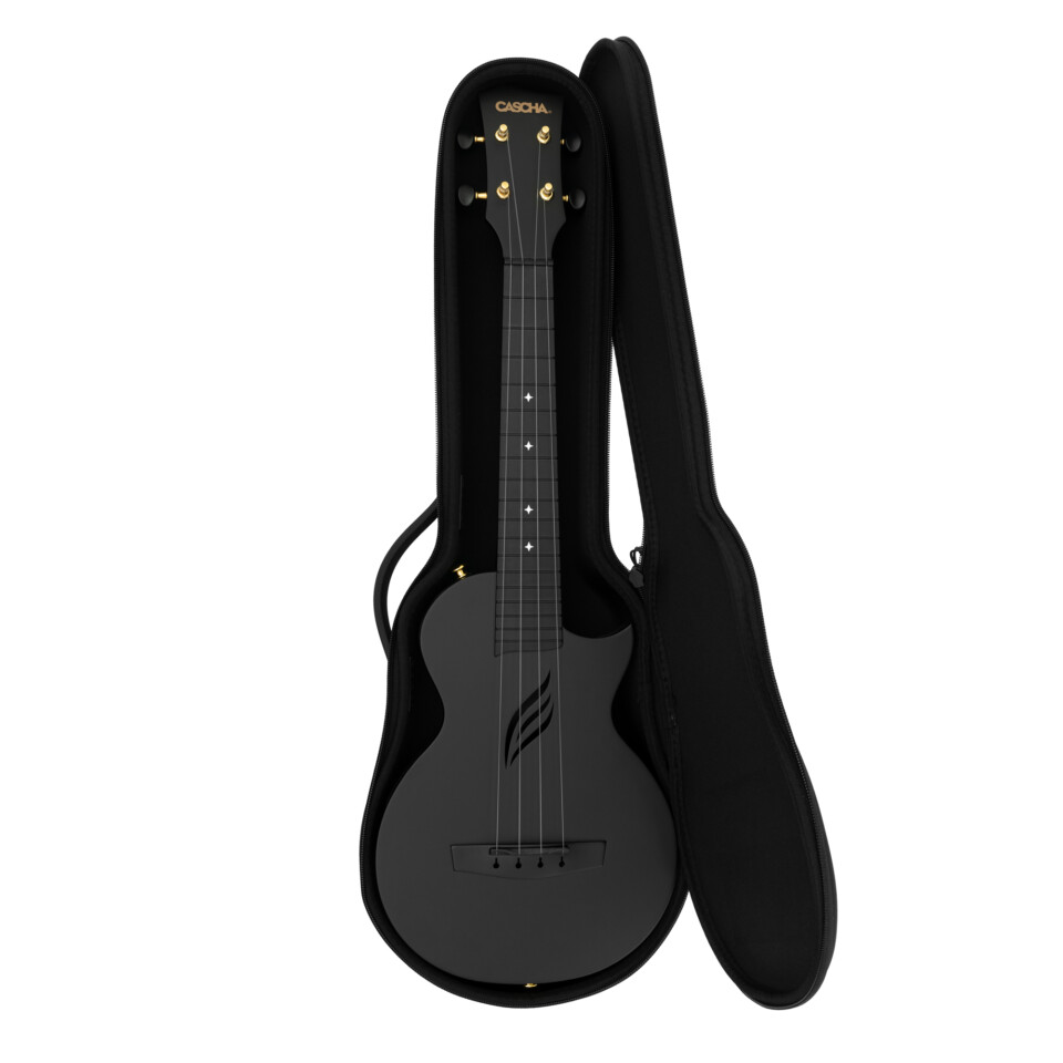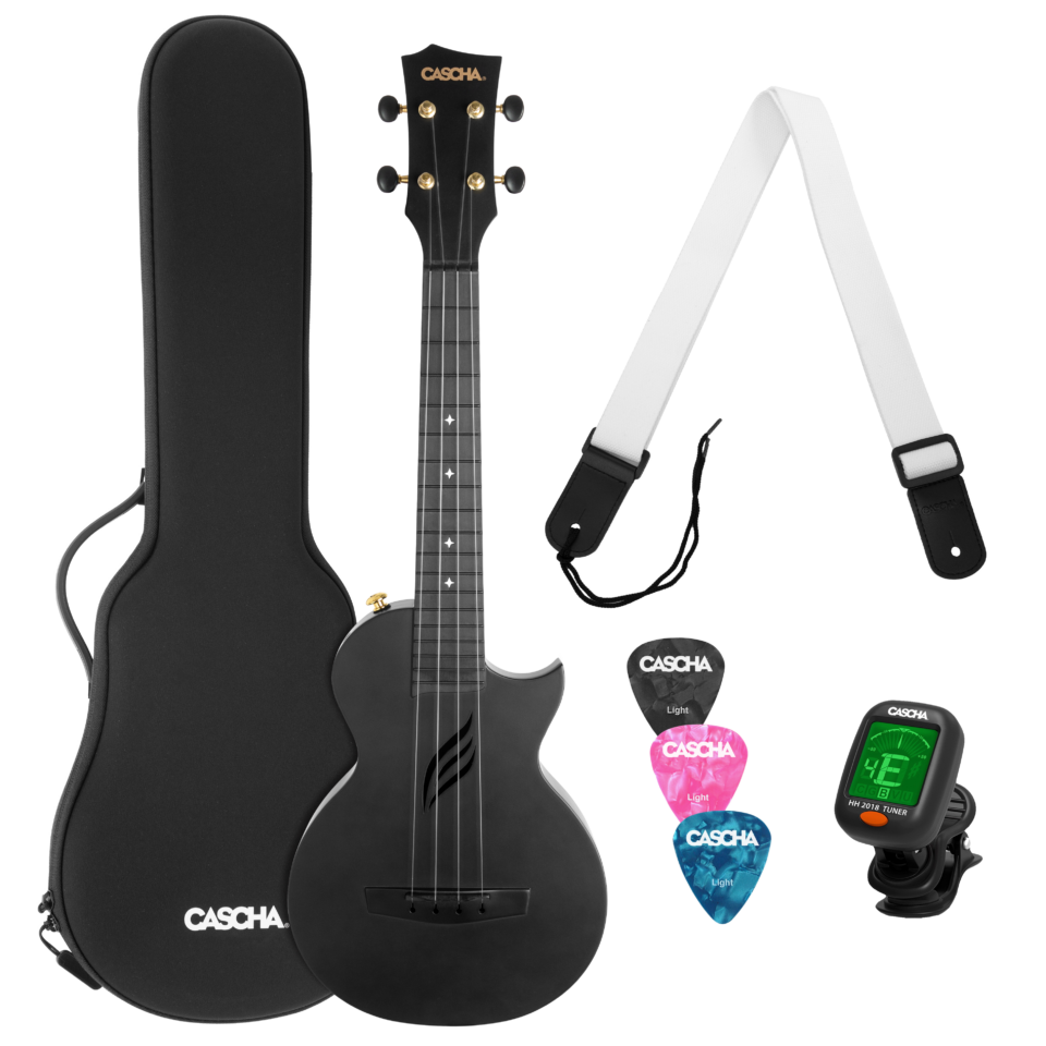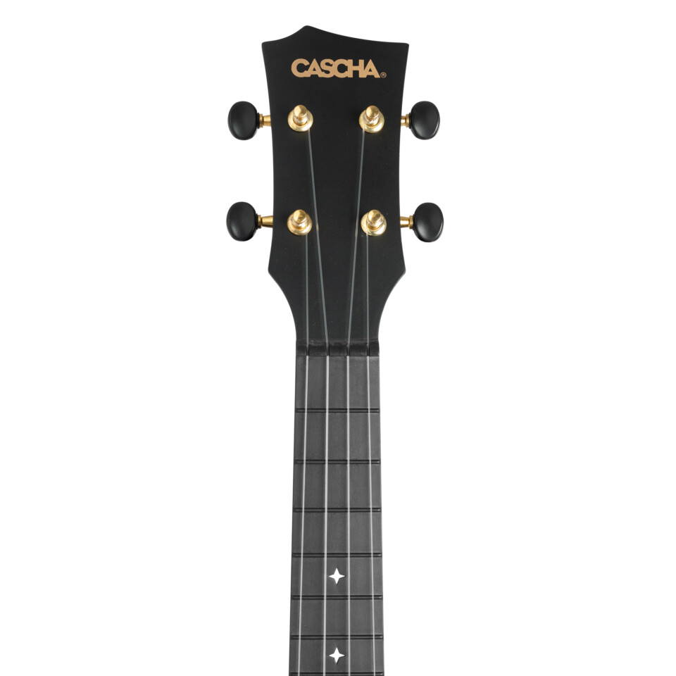 Die Cascha Carbon Ukulele in schwarz überzeugt durch ihre Einzigartigkeit und den herausragenden Klang. Sie ist durchgehend von Kopfplatte bis Korpus aus Kohlefaser hergestellt. Dadurch lässt sich die Ukulele auch leicht reinigen und ist generell resistenter gegen äußere Einflüsse. Verglichen mit gewöhnlichen Ukulelen, hat die Cascha Carbon Ukulele einen helleren und differenzierteren Klang und kann zusätzlich mit Ihrer langlebigen und hochwertigen Konstruktion beeindrucken. Dank des leichten Gewichts und dünnen Korpus ist die Ukulele einfach und angenehm zu spielen, ohne Soundeinbußen hinnehmen zu müssen.