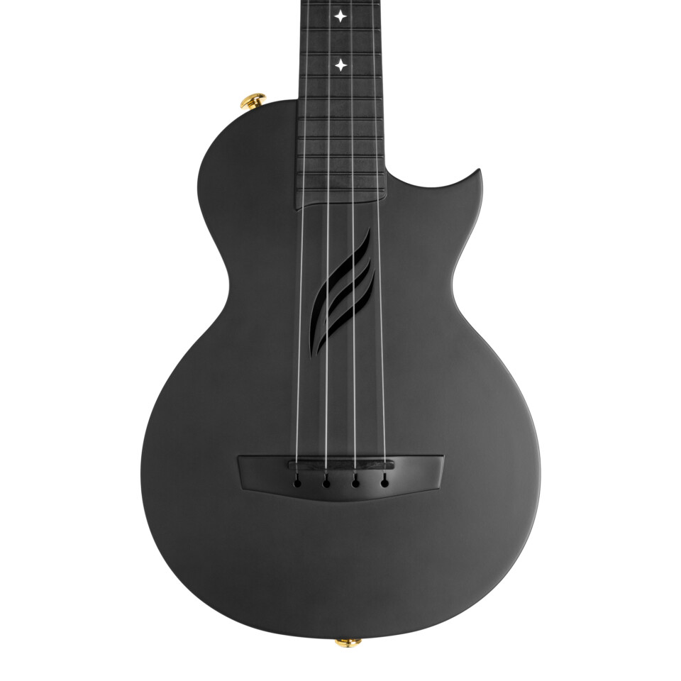 – Schwarze Ukulele aus Carbonfasern und Polycarbonat
