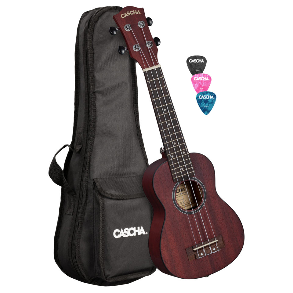 Einfach auspacken und Spaß haben. Die Ukulele ist ein geniales Instrument. Sie ist handlich, klein und einfach zu erlernen. Diese Sopran Ukulele überzeugt durch ihre hohe Qualität und die hervorragenden Klangeigenschaften der verwendeten Klanghölzer. Dank der präzisen, gekapselten Stimmmechaniken und den exzellent klingenden Aquila Marken-Nylon-Saiten hält sie ihre Stimmung immer perfekt. An den vorhandenen Gurtpins lässt sich schnell und einfach ein Ukulele Gurt anbringen. Die Cascha Premium Ukulele ist sowohl für Einsteiger als auch für fortgeschrittene Spieler geeignet. Zum Lieferumfang dieses Sets gehören eine praktische 5 mm gepolsterte Tragetasche und 3 Plektren.