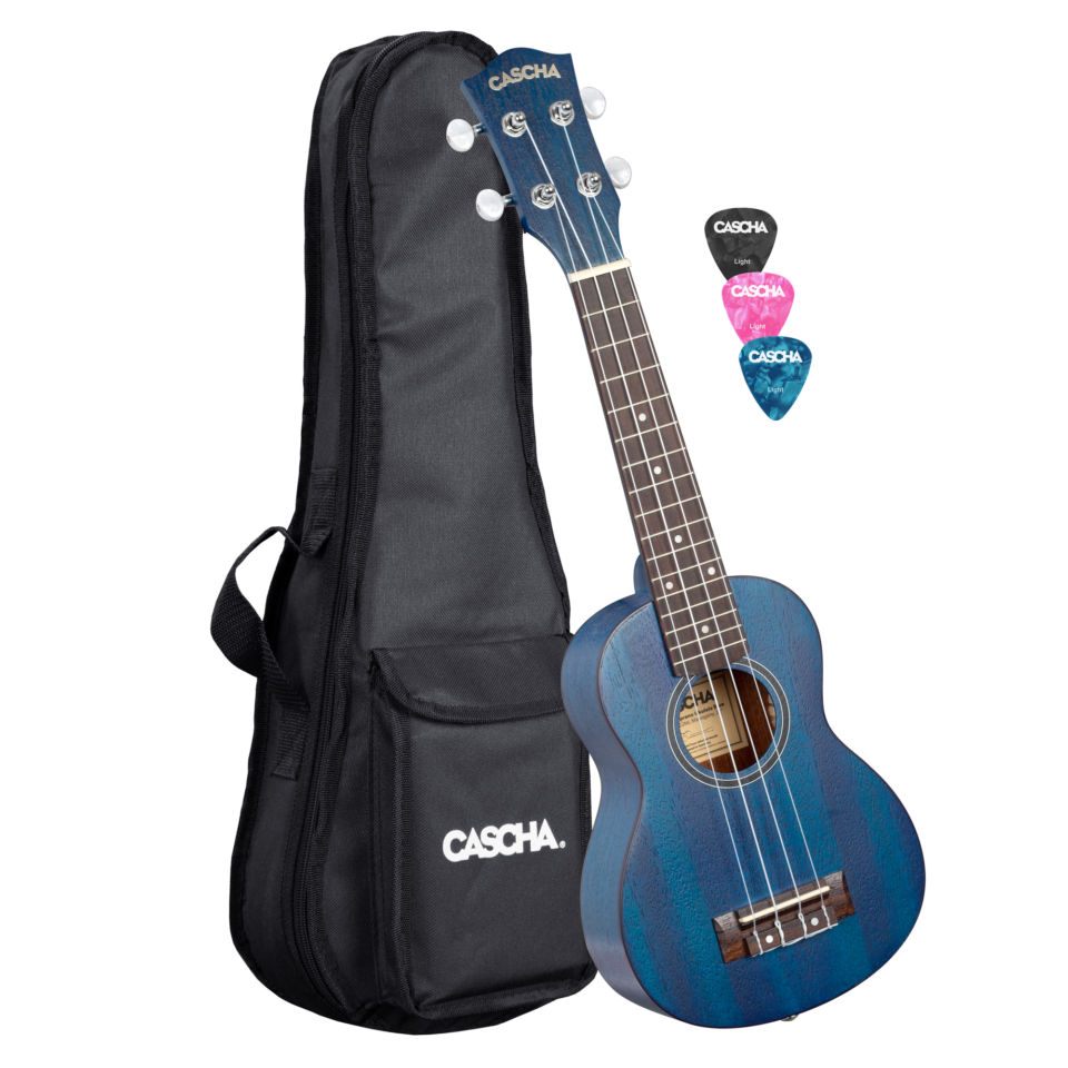 – Mahagoni Sopran Ukulele Set in Blau