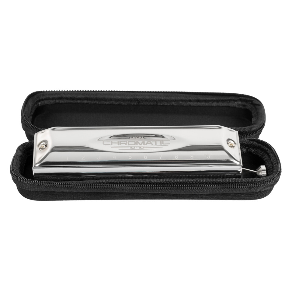 Die CASCHA CHROMATIC Mundharmonika ist eine 10-Loch Mundarmonika mit 40 Tönen und dadurch unglaublich flexibel einsetzbar. Die Harmonica hat einen Tonumfang von 2 ½ Oktaven und ist für verschiedenste Musikrichtungen wie z.B. Folk, Jazz, Pop, Blues oder Klassik geeignet. Das Edelstahl-Gehäuse macht die CHROMATIC zu einem äußerst robusten Wegbegleiter. Das enthaltene Putztuch und das hochwertige Soft-Case runden das Paket ab.