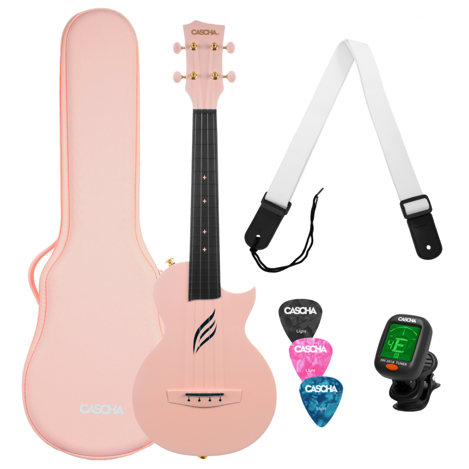 Die Cascha Carbon Ukulele in pink überzeugt durch ihre Einzigartigkeit und den herausragenden Klang. Sie ist durchgehend von Kopfplatte bis Korpus aus Kohlefaser hergestellt. Dadurch lässt sich die Ukulele auch leicht reinigen und ist generell resistenter gegen äußere Einflüsse. Verglichen mit gewöhnlichen Ukulelen, hat die Cascha Carbon Ukulele einen helleren und differenzierteren Klang und kann zusätzlich mit Ihrer langlebigen und hochwertigen Konstruktion beeindrucken. Dank des leichten Gewichts und dünnen Korpus ist die Ukulele einfach und angenehm zu spielen, ohne Soundeinbußen hinnehmen zu müssen.