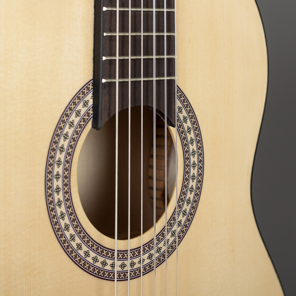 Die verarbeiteten Hölzer sind bei Gitarren sehr wichtig für den Sound. Daher wurden für die Cascha Konzertgitarre nur ausgewählte Klanghölzer verwendet. Die Decke der Gitarre besteht aus laminiertem Fichtenholz und sorgt für einen warmen Sound. Der Boden und die Zargen sind aus hochwertigem Linden-Holz gefertigt, der Hals aus Okoume-Holz. Griffbrett und Steg bestehen aus widerstandsfähigem Verbundholz. Diese Edelhölzer sorgen nicht nur für einen hervorragenden Klang, sondern machen die Konzertgitarre von Cascha zu einem optischen Highlight!