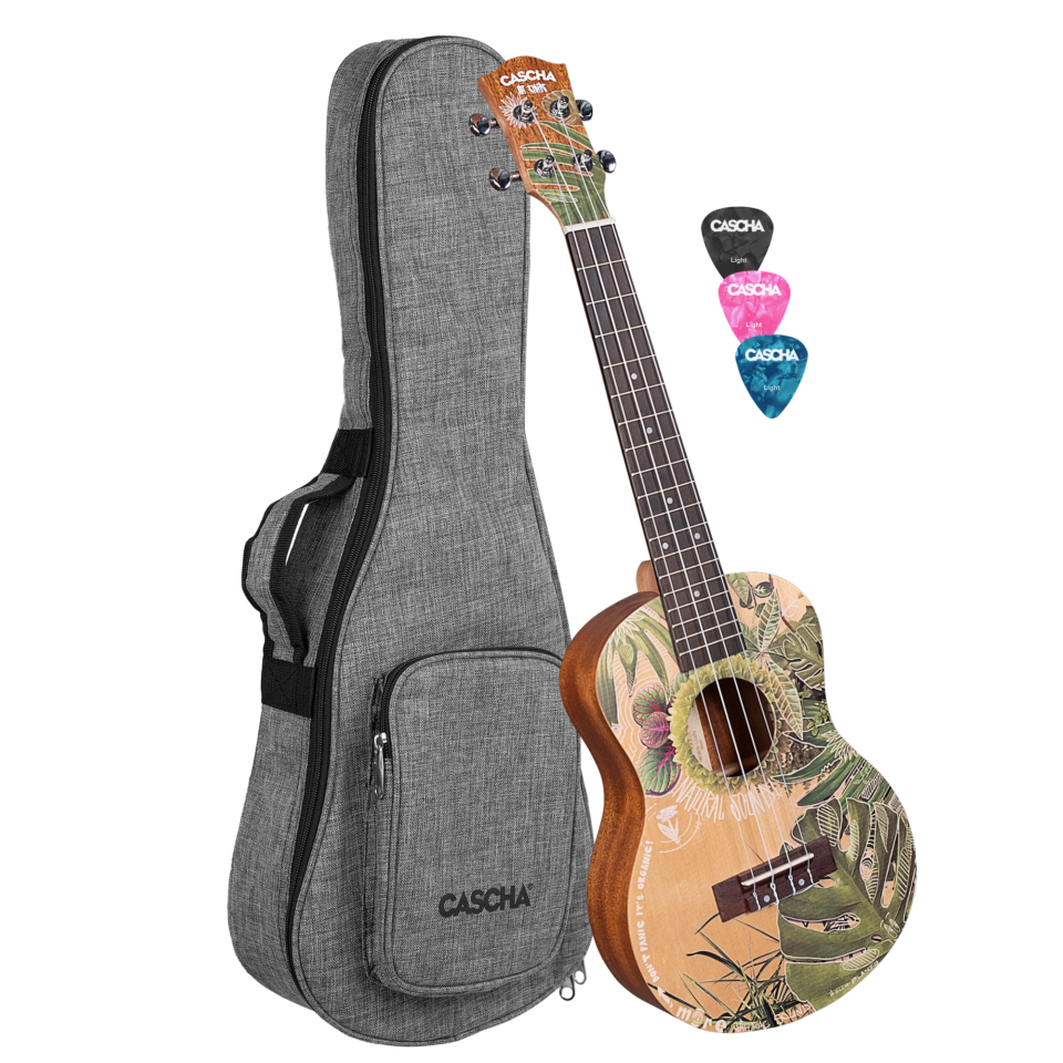 Mit der Cascha Leafy erhältst du nicht nur eine Ukulele mit einem tollen und auffälligen Design, sondern auch eine, das alle Eigenschaften einer herausragenden Ukulele bietet: Und das, zu einem unglaublichen Preis! Cascha beweist damit, dass bei Sound, Qualität, Ausstattung und Design keine Kompromisse gemacht werden müssen.