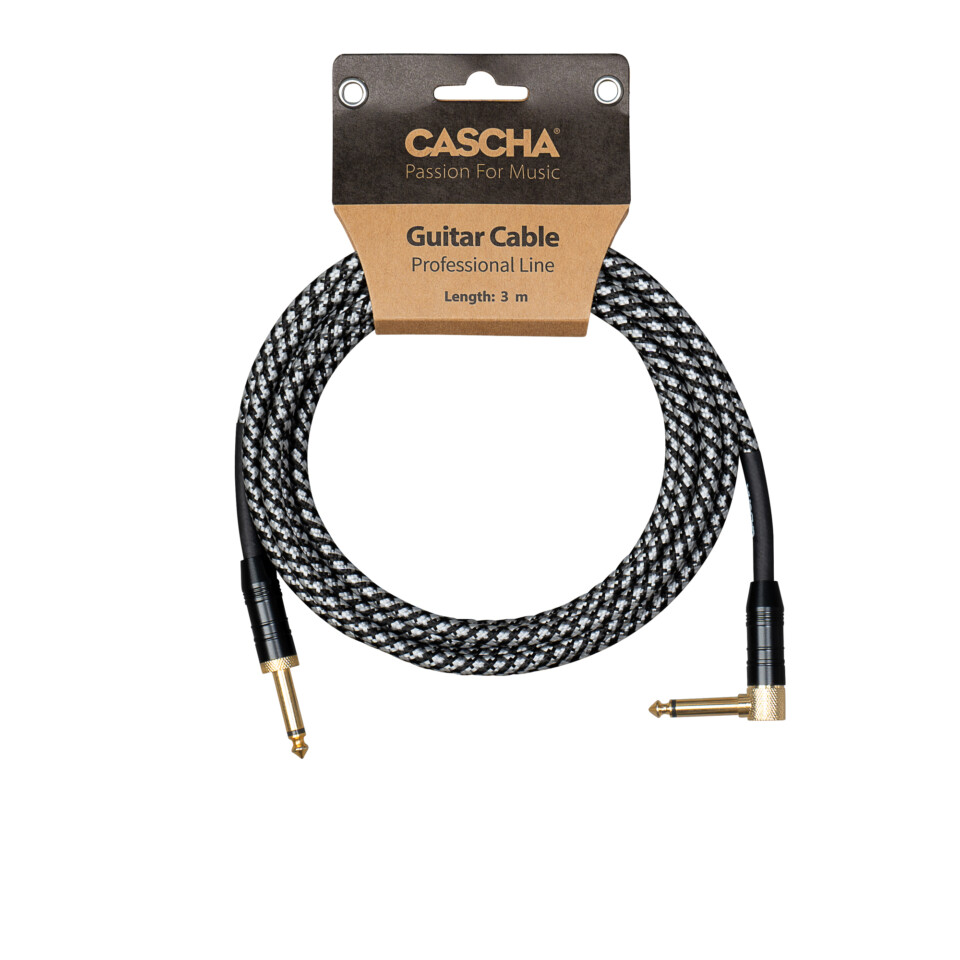 Cascha Professional Line Guitar Cable, Angled, Tweed Black, 3m