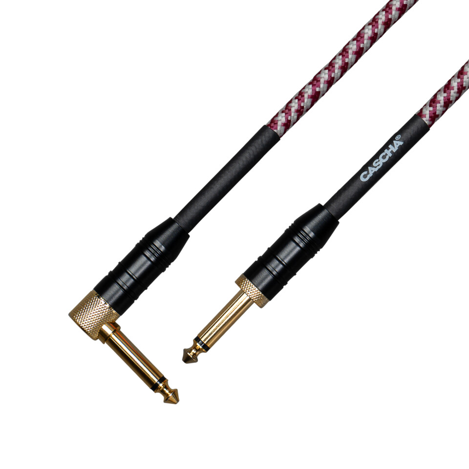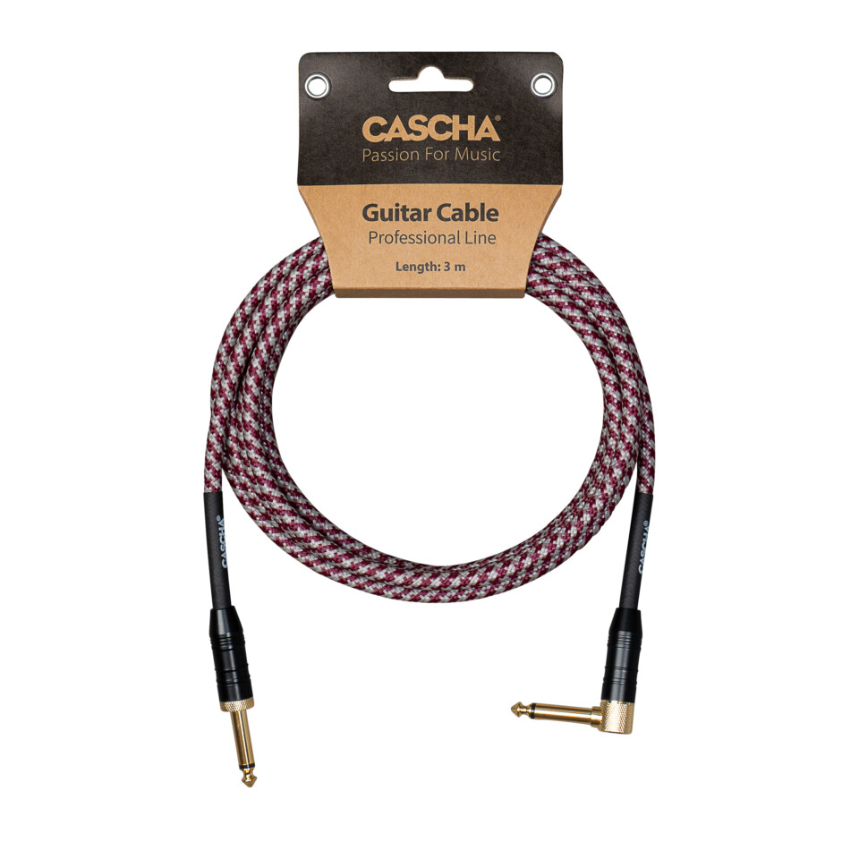 Cascha Professional Line Guitar Cable, Angled, Tweed Red, 3m