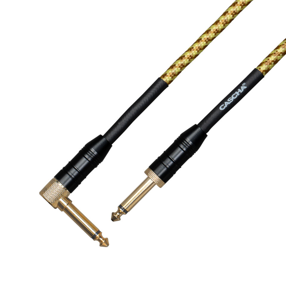 Cascha Professional Line Guitar Cable, Angled, Tweed Natural, 6m