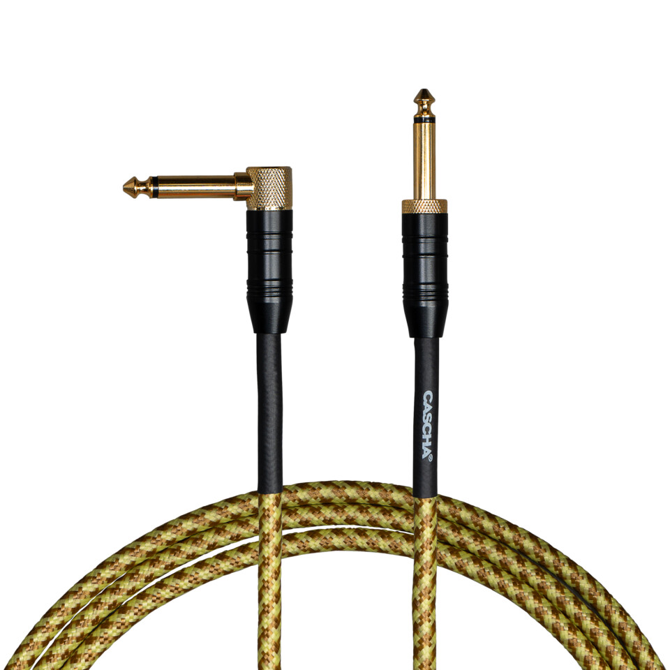 Cascha Professional Line Guitar Cable, Angled, Tweed Natural, 9m