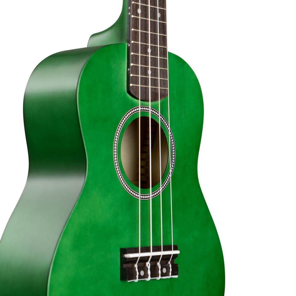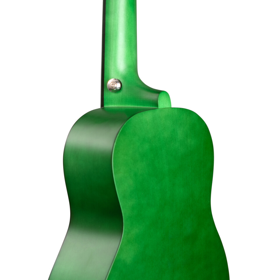 The bright colours in which the small guitars are available underline the colourful and funny character of the instrument. They promote the good mood that arises when playing. The wood structure is visible despite the beautiful colours. The high-quality wood has been carefully glazed for this purpose.